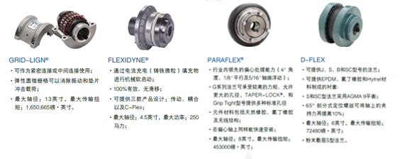 DODGE公司的PARA-FLEX輪胎式彈性聯(lián)軸器特有的內(nèi)襯編織層增強的彈性體結(jié)構(gòu),采用法蘭組件安裝固定,可以傳遞更大的扭矩。PARA-FLEX系列包括直軸式、錐套式、隔套式以及高速飛速飛輪式等類型。